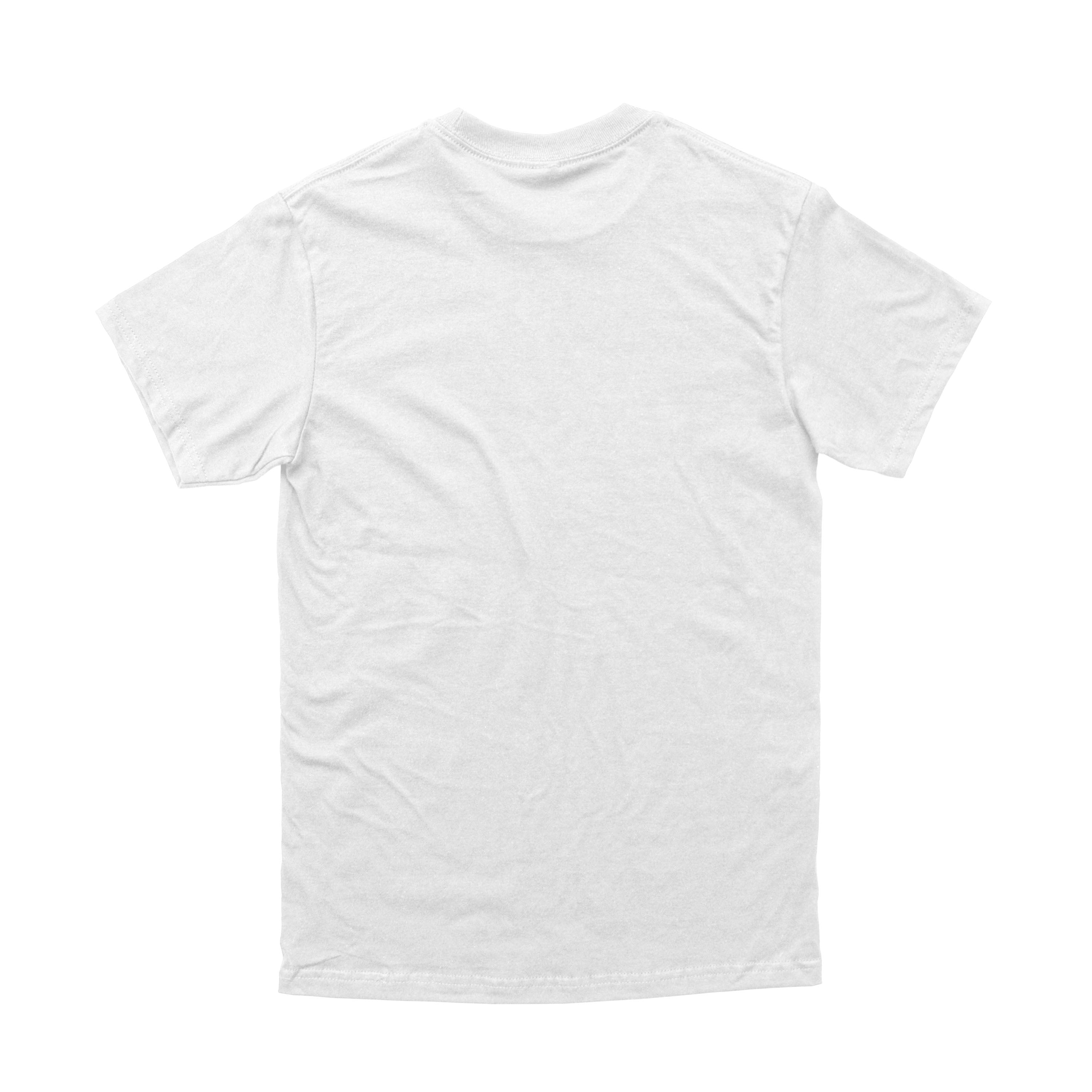 100% Cotton White T-Shirt featuring a 2-color graphic screen print [Red, Green]