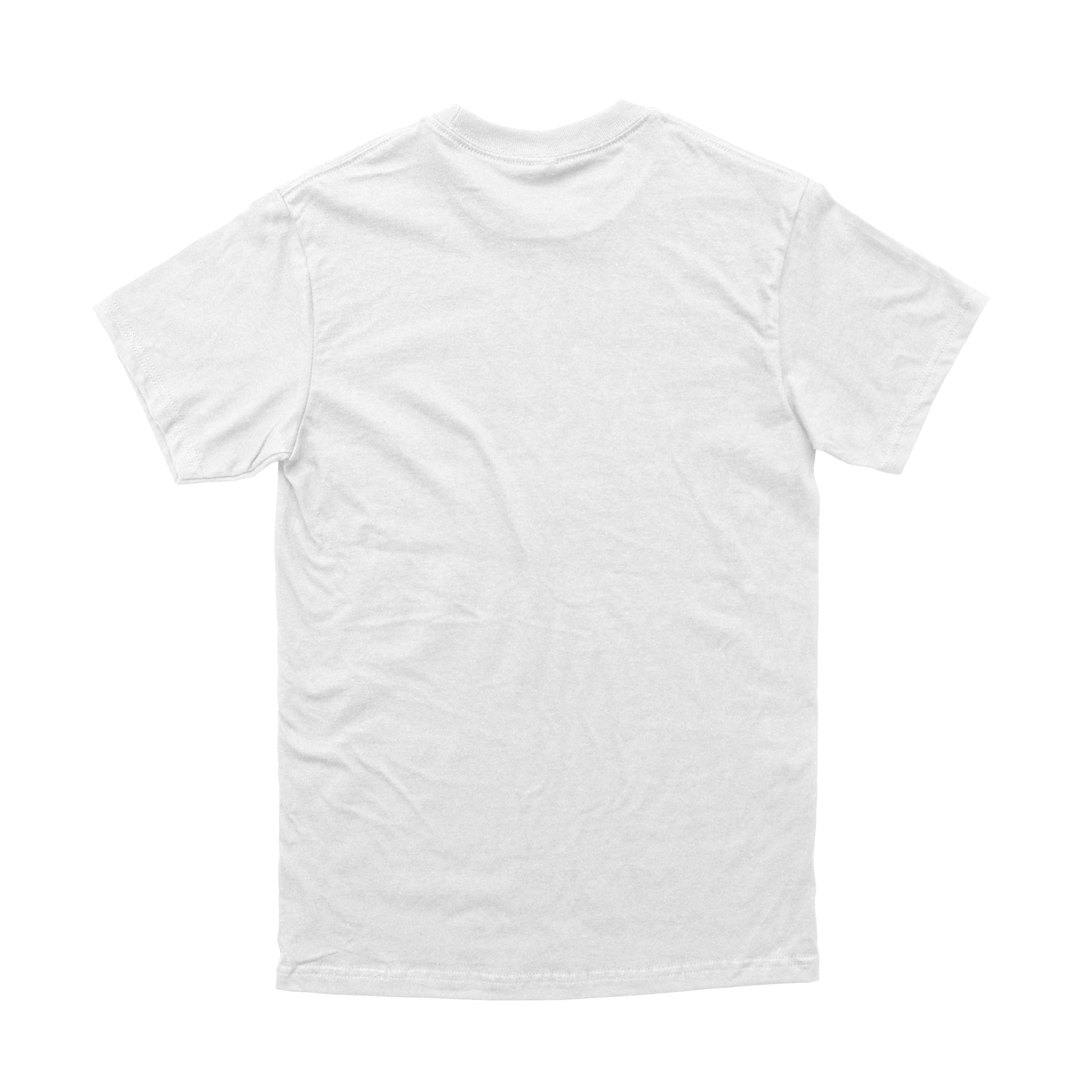 100% Cotton White T-shirt featuring 2-color front print [Navy, Orange]